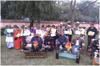 Vice-Chancellor with the innovative farmers from 13 districts of Bihar honoured with Innovative Farmers Award-2017 on 26th January, 2018