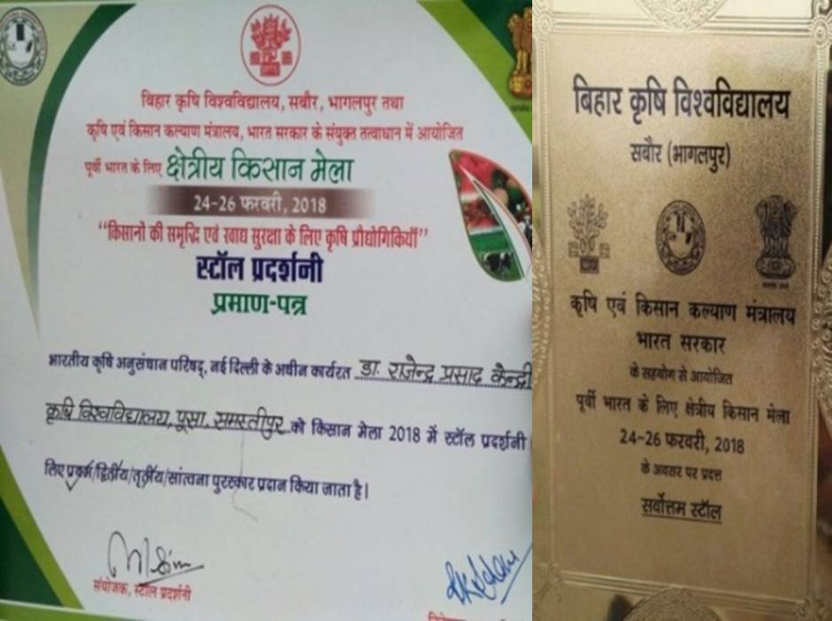 RPCAU, Pusa gets best stall prize in the State Level Agriculture Fair at Motihari on 15 April, 2018